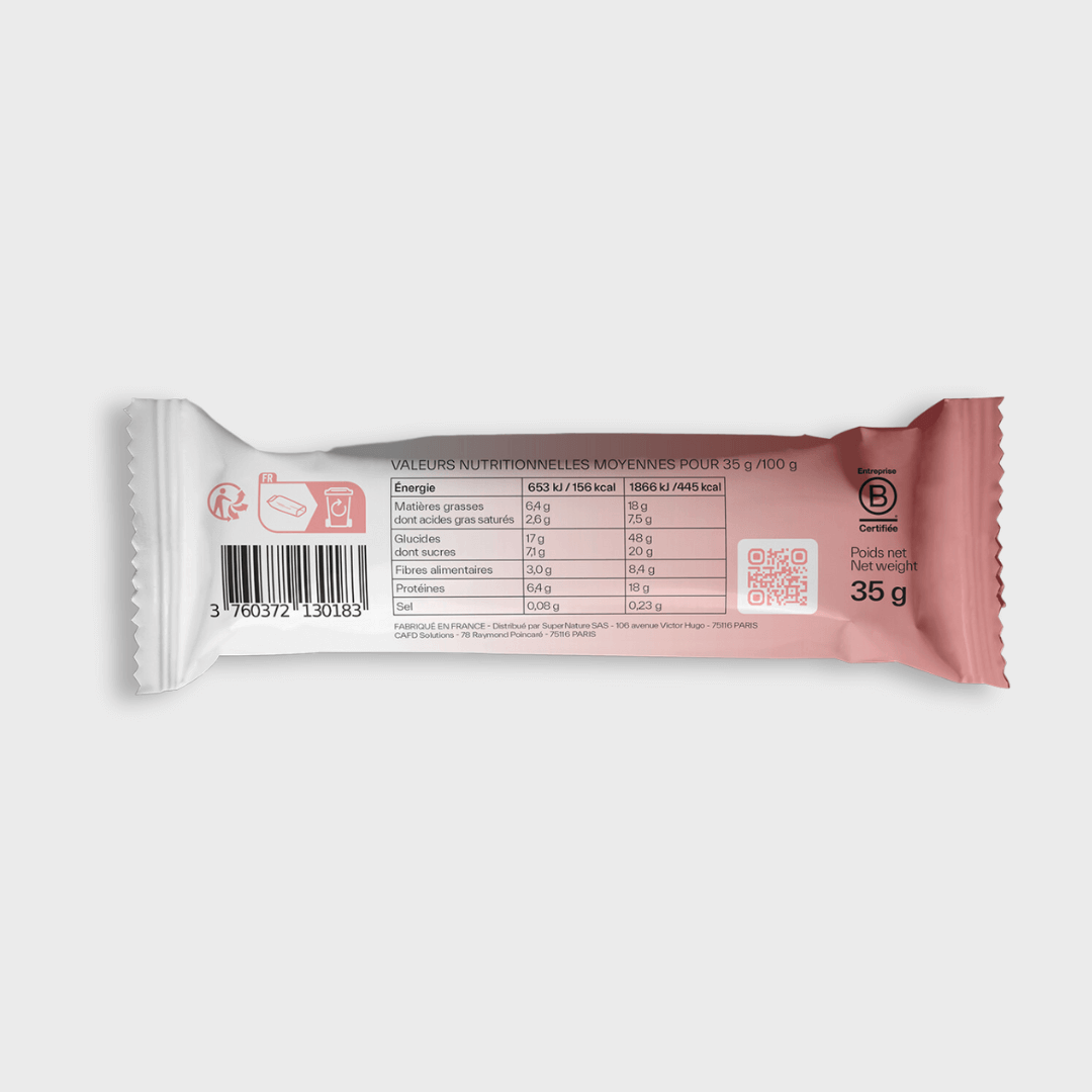 Cette barre est parfaite pour un coup de peps ! Que ce soit avant ou après le sport, elle donne de l’énergie tout en prenant soin de votre bien-être.